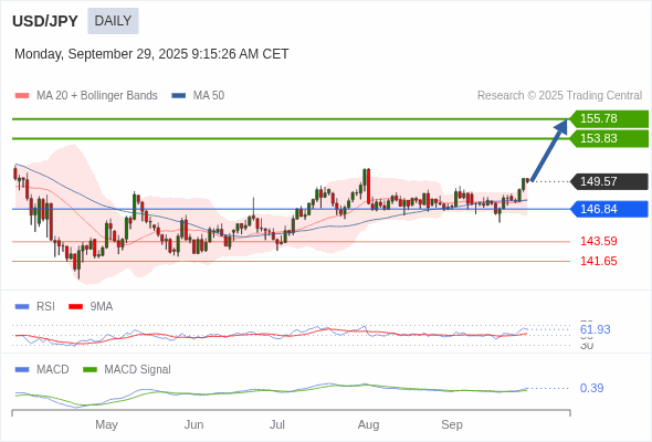 美元/日元 短线 : 看涨,当 146.84 为支撑位。