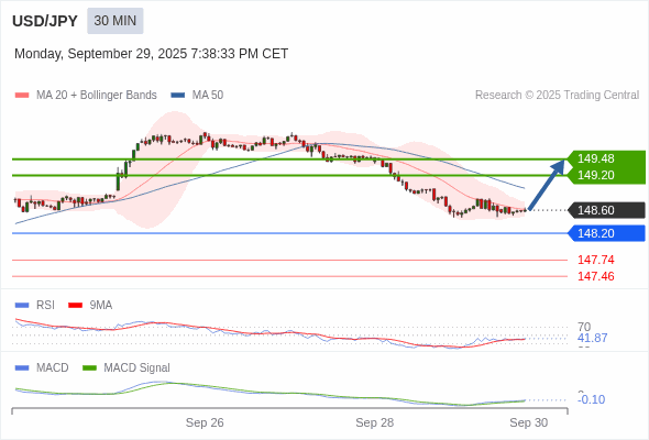 美元/日元 当日内 : 有上涨的可能,目标价位定在 149.48 。