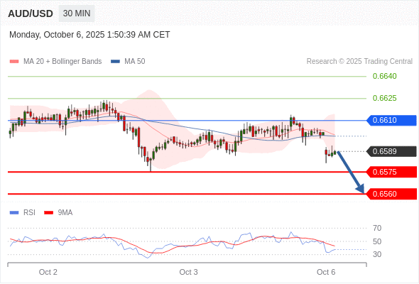 在 0.6610 之下,看跌,目标价位为 0.6575 ,然后为 0.6560 。