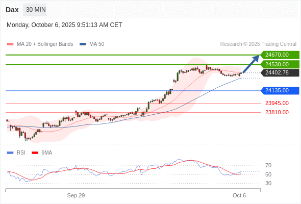 在 24135.00 之上,看涨,目标价位为 24530.00 ,然后为 24670.00 。