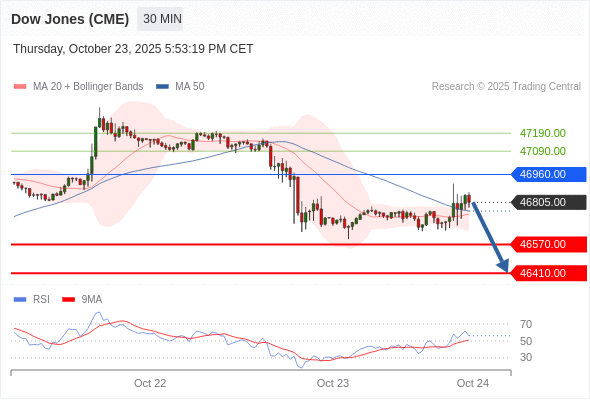 在 46960.00 之下,看跌,目标价位为 46570.00 ,然后为 46400.00 。