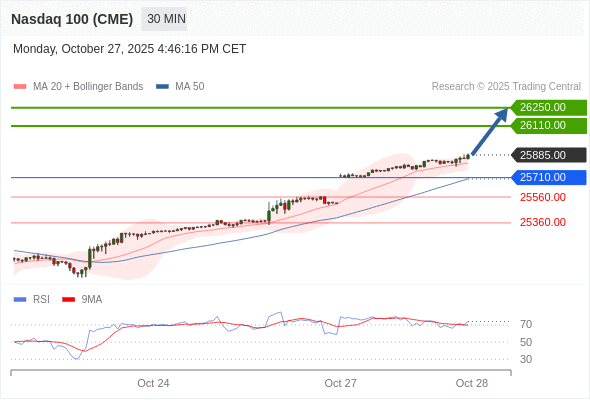在 25710.00 之上,看涨,目标价位为 26110.00 ,然后为 26250.00 。