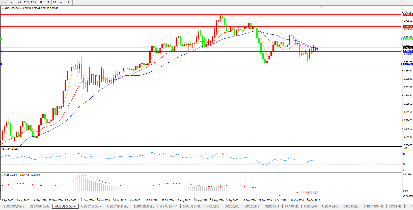 备选策略:0.7200上方看涨,目标0.7300、0.7400