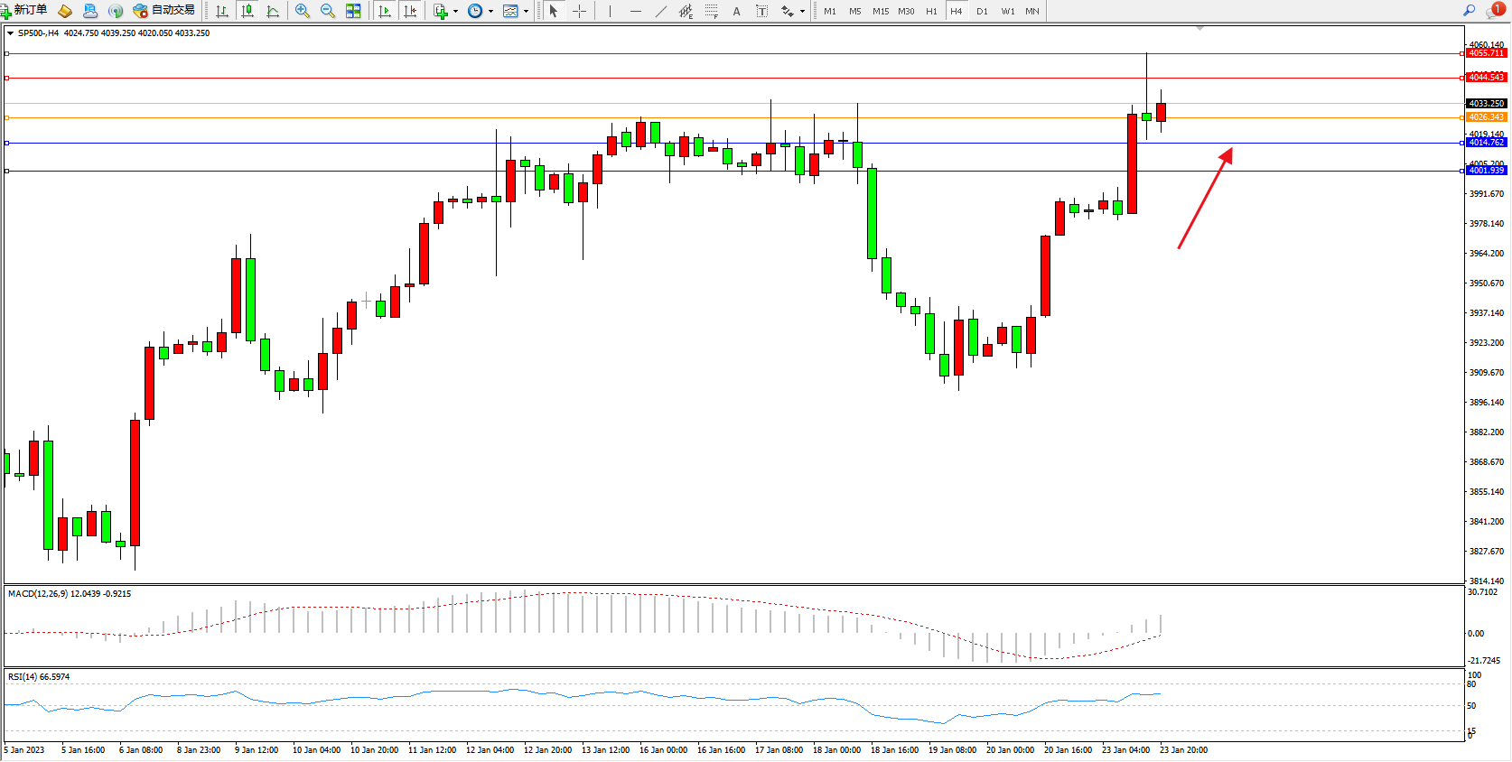 标普500指数1月23日(周一)收盘上涨46.74点,涨幅1.18%,报4019.35点;美国经济的不利因素越来越多,给美联储的货币政策立场带来了很多不确定性,标普500指数反映的衰退概率为73%,但较去年高达98%的水平有所下降。